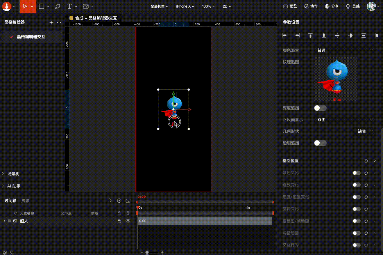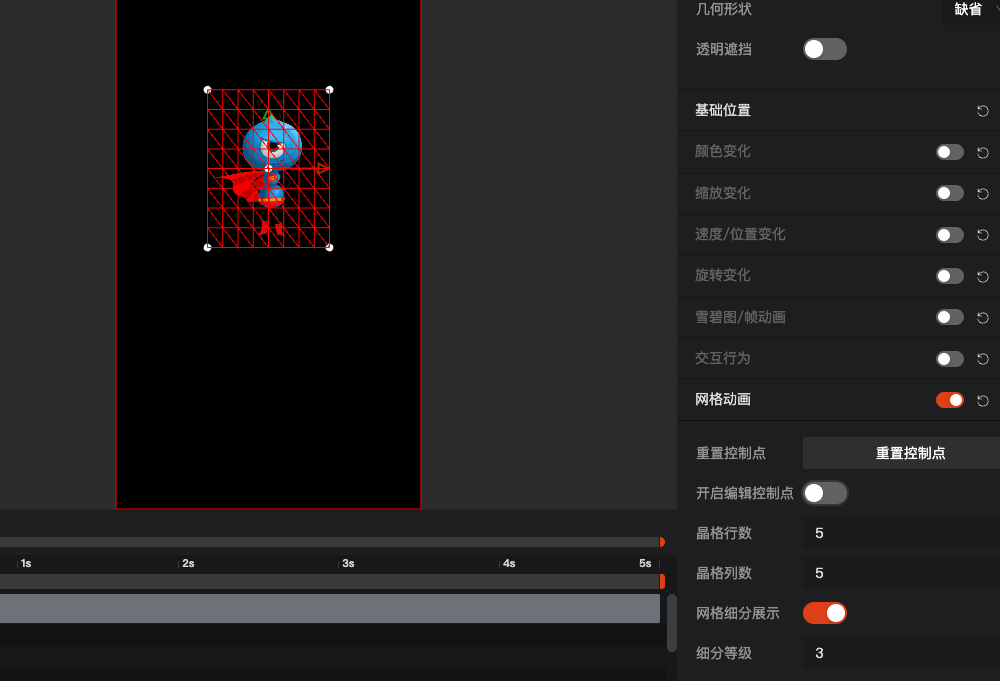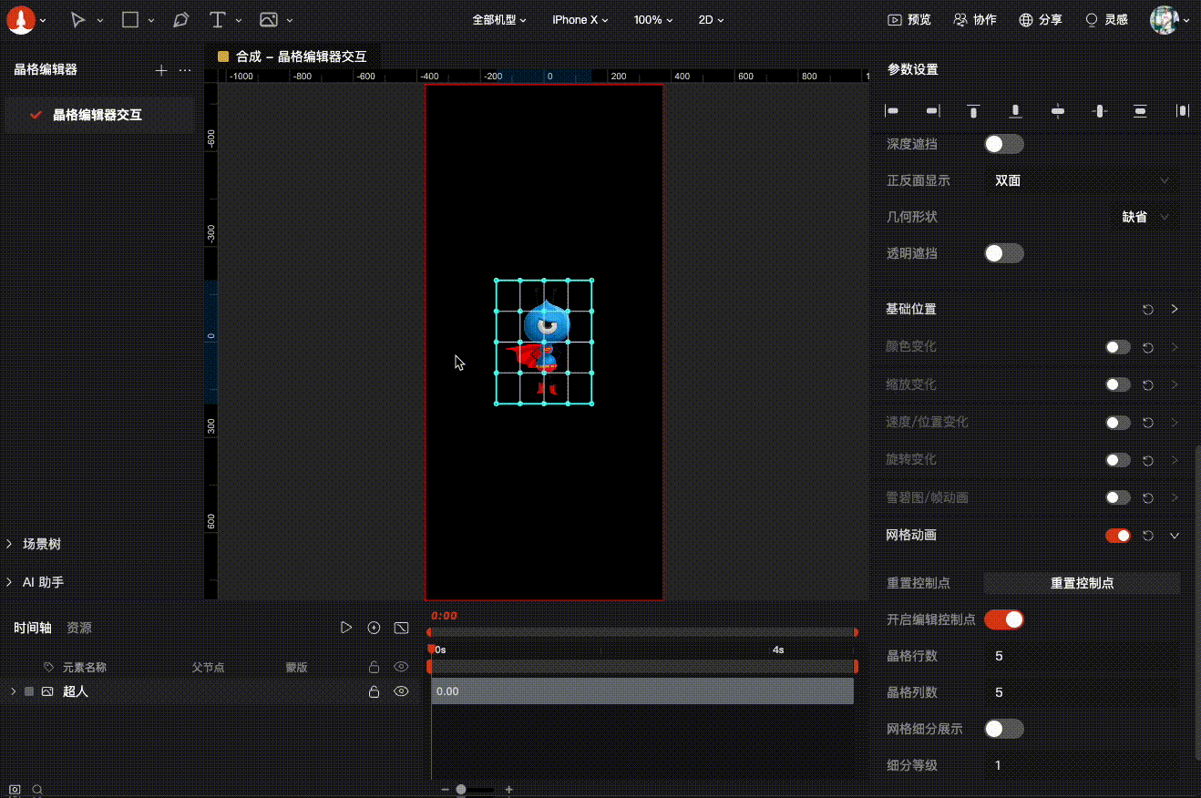 - 元素晶格点 K 帧时,需要从属性面板打开 “开启编辑晶格点” 功能。