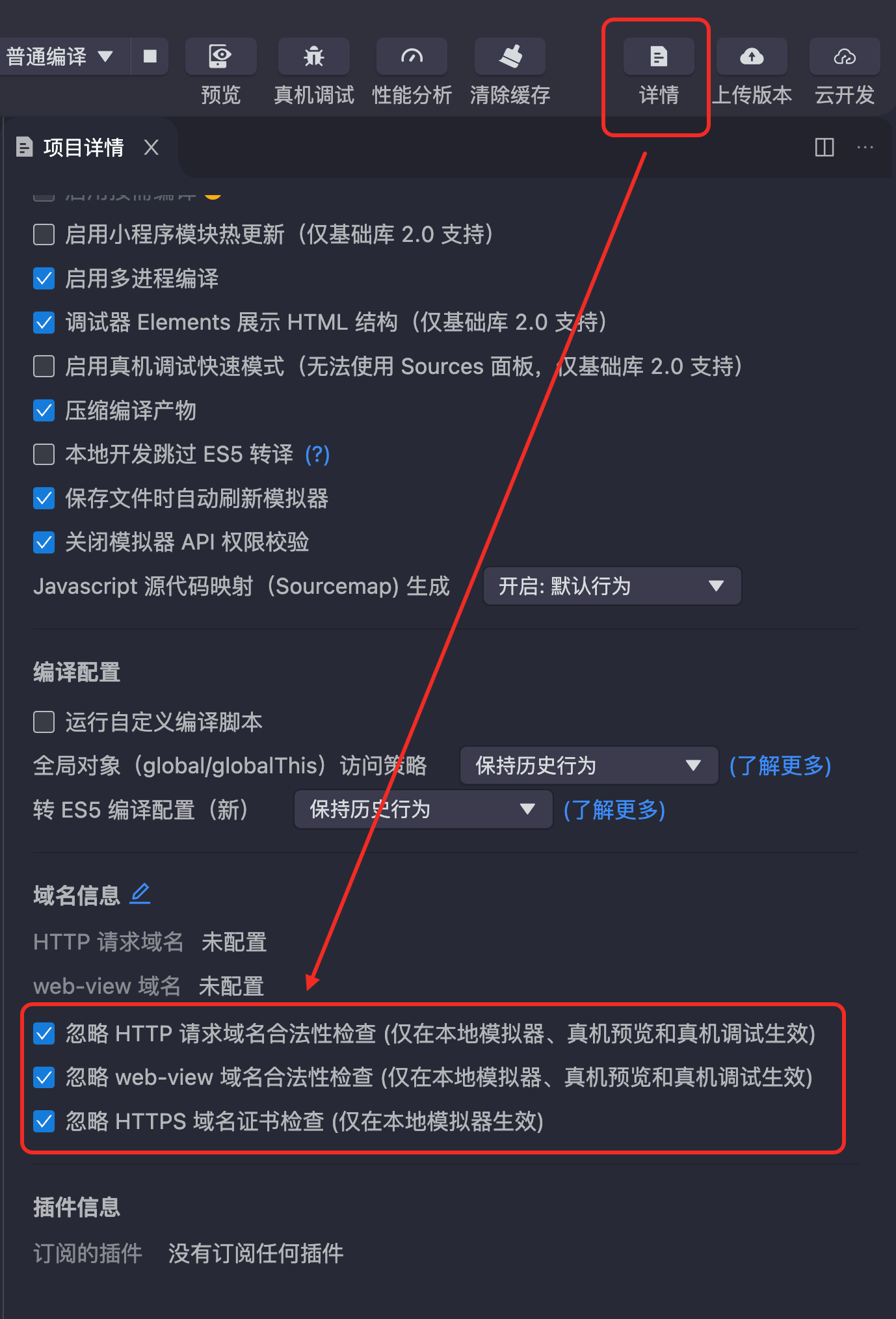 小程序配置的自检有以下两个方式: