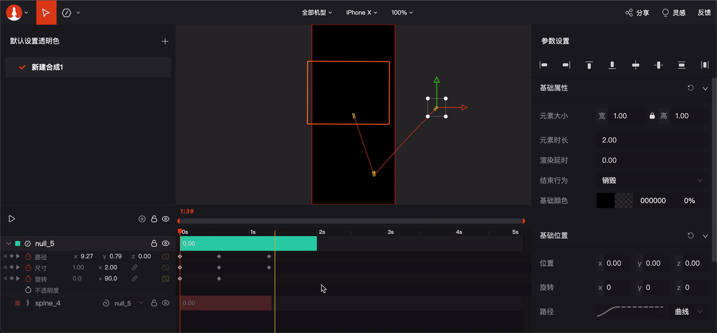 Spine 作为元素,可以在 Galacean Effects 中认父空节点。K 帧空节点,相当于将 Spine 文件做为一个整体对其K 帧。