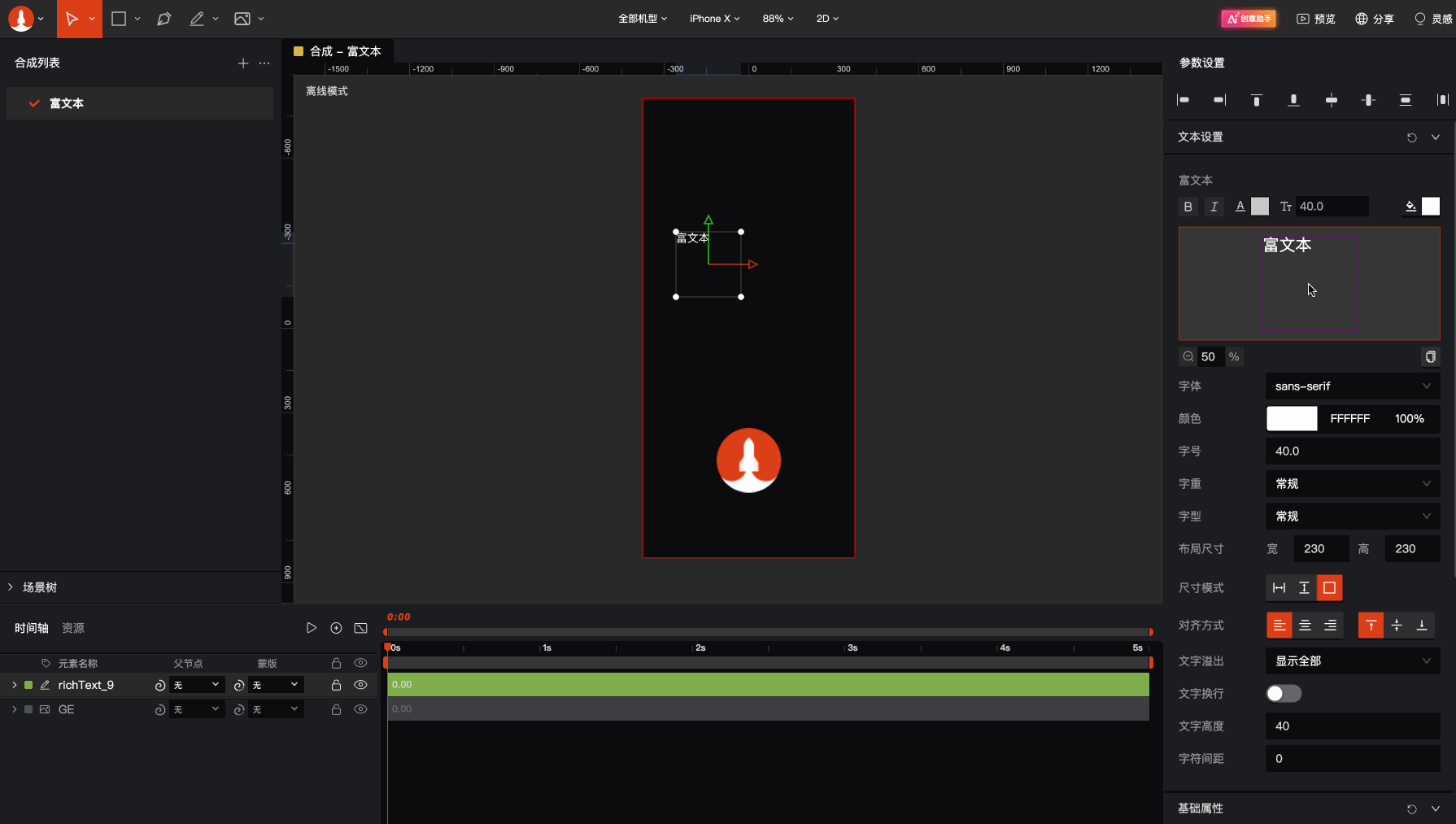 在一些特定场景下,单纯的文本元素无法满足设计师的设计需求,所以Galacean Effects 提供了可操作程度更高的富文本元素,借助富文本,用户能够实现多种自定义文本样式,极大地提升了文本设计的灵活性和可能性。
