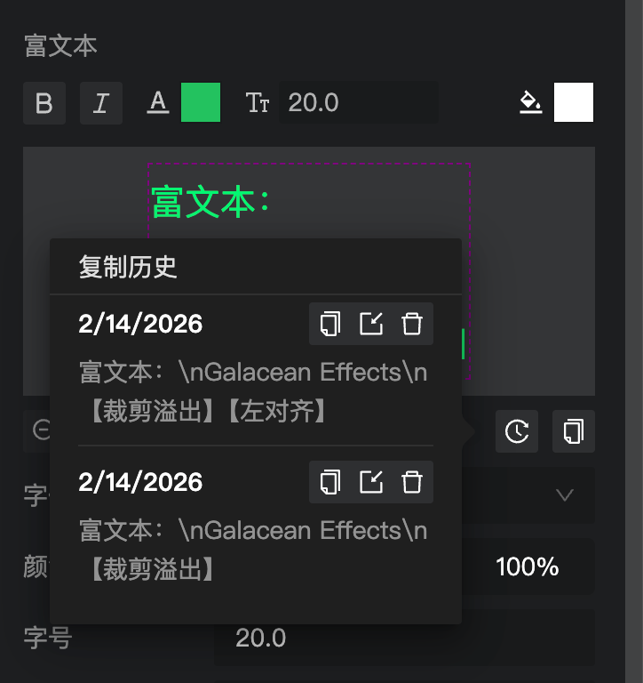 - 将复制过的文本直接应用到当前选中的富文本元素上