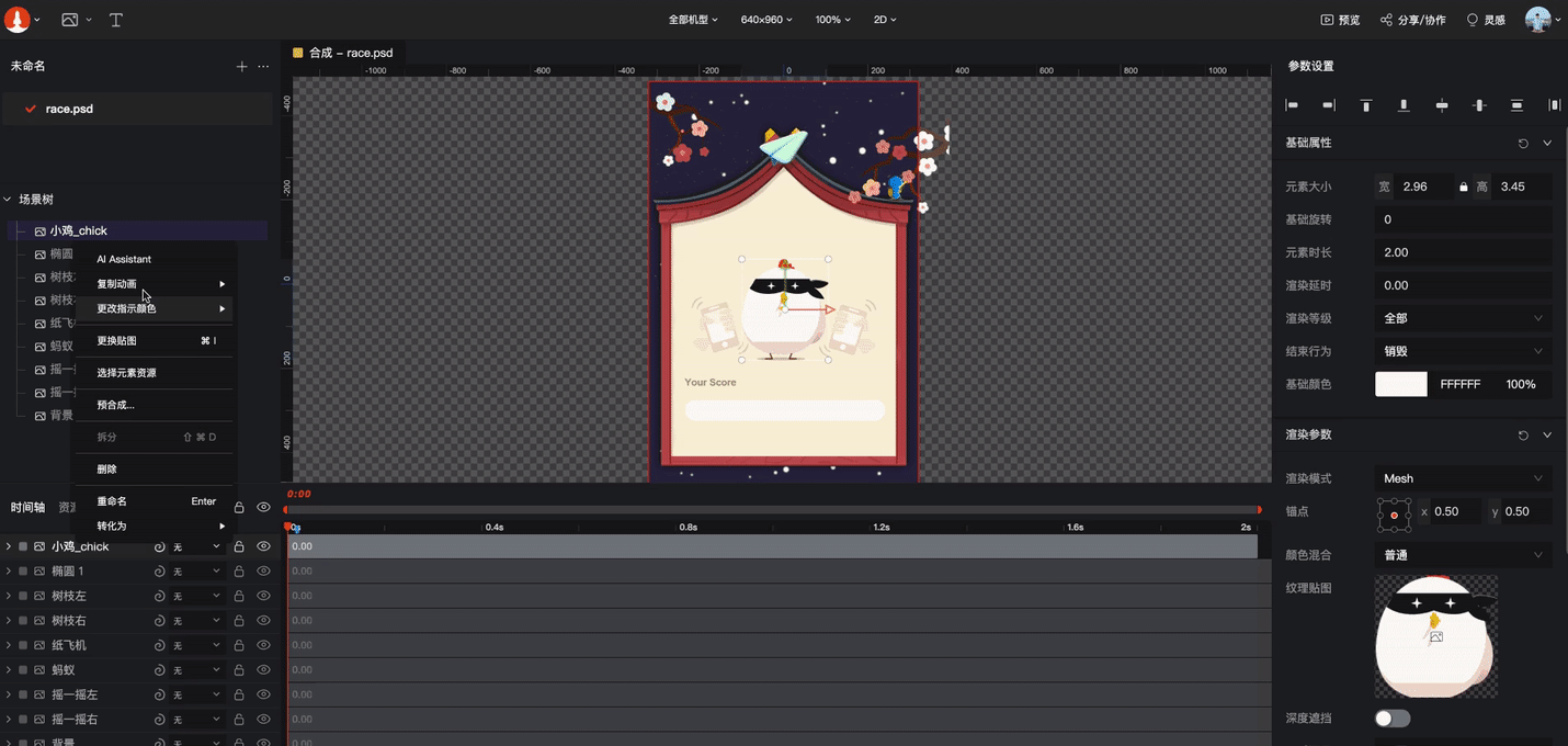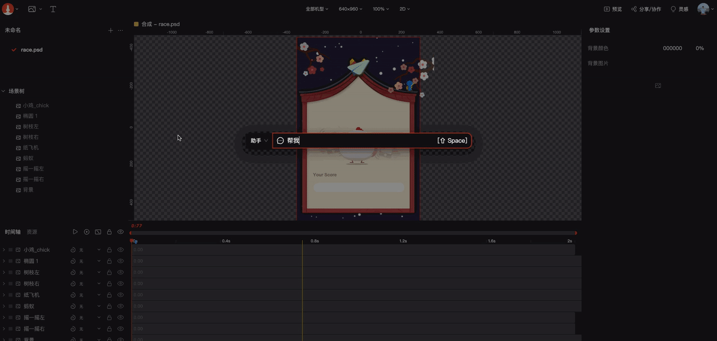 作为动效设计工作流,动效的快速制作必然是第一生产力。那么,你可以通过自然语言描述,生成你想要的动画效果。这就是我们的 AI 语义化动画 Key 帧的能力。