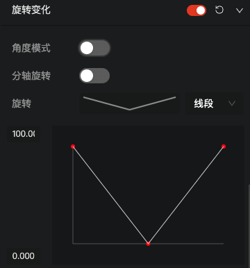 - 角度模式:默认关闭。关闭时,调整的是元素围绕环绕中心在 X/Y/Z 轴方向上的速度变化。开启时,调整的是角度变化。