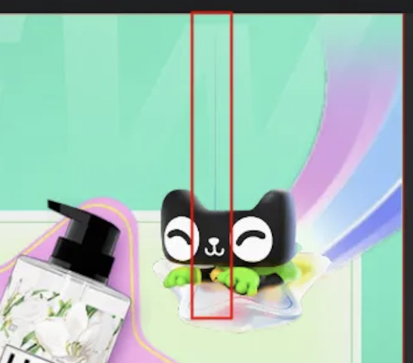 如下图所示:使用彩带雪碧图时,由于彩带右侧线条贴边,按行列数切割时可能会保留边缘像素,导致图层元素出现异常颜色。