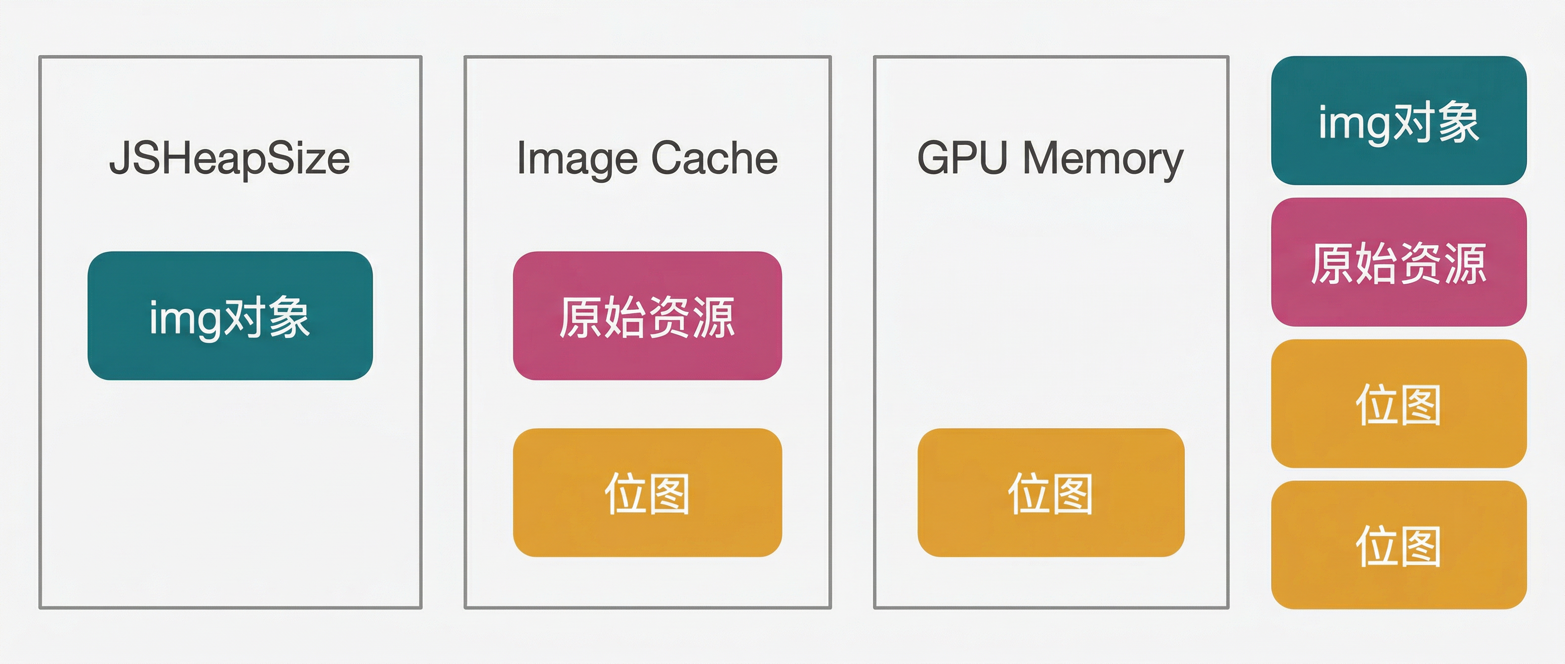 - 💾 内存占用高:除原始文件的存储外,浏览器和 GPU 还会各自保存一份位图数据(见图示 1)